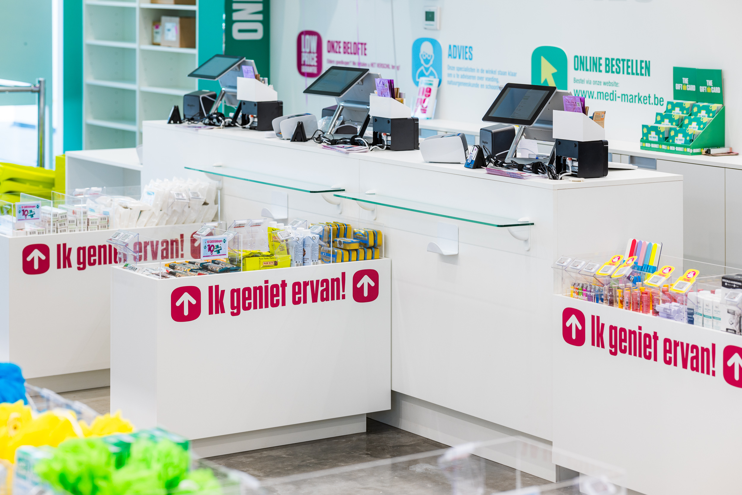Medi-Market Lommel allie design moderne et expérience pratique en magasin. Connu pour son approche unique dans le commerce de détail de soins de santé, la marque propose un agencement de magasin accessible avec un flux intuitif et une communication claire. Chaque détail, des étagères sur mesure aux présentoirs innovants, avec ou sans finition en bois, souligne l'identité de Medi-Market.